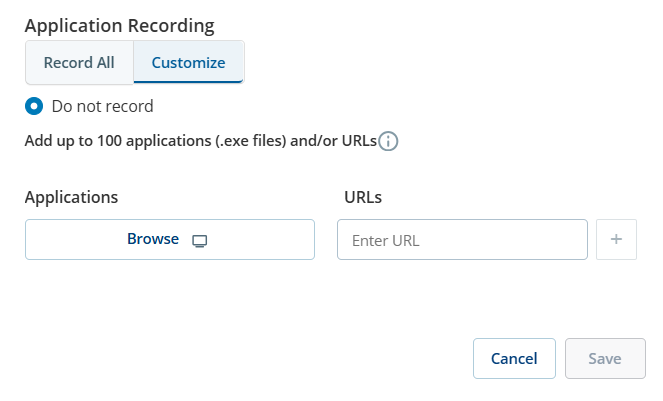 Use the Deny list to prevent the accidental recording of sensitive data. The Deny list can include up to 100 applications and/or URLs.