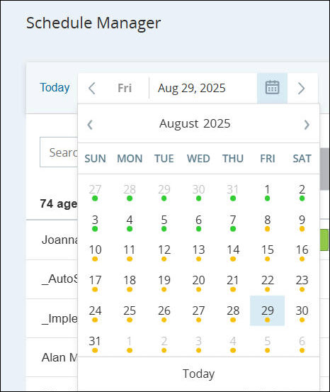 You can also select Weekly or Daily view in the Schedules tab to see the same green/yellow indicators.